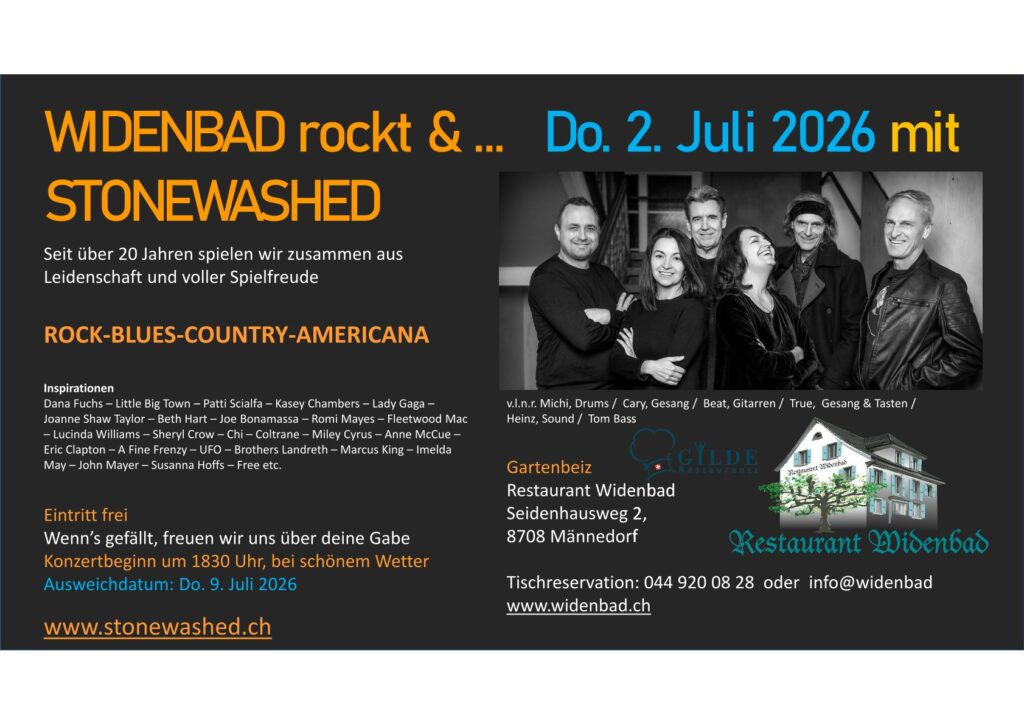 Donnerstag, 2. Juli 2026 ab 18.30 Uhr bei schönem Wetter im Platanengarten